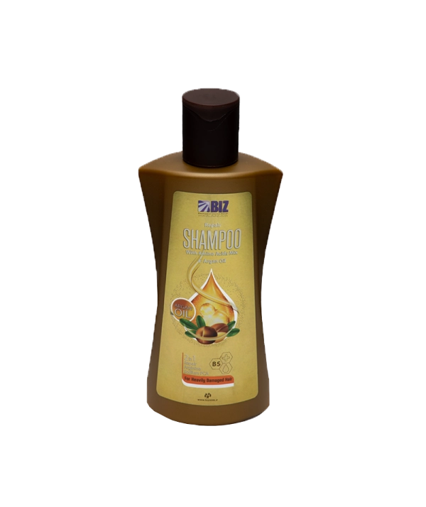 شامپو حاوی روغن آرگان بیز با ترمیم و تقویت بافت و ریشه مو از شکنندگی و ریزش مو نیز جلوگیری می کند. روغن آرگان موجود در این شامپو باعث نرمی و لطافت، ابریشمی، براق و درخشان شدن موها می شود.