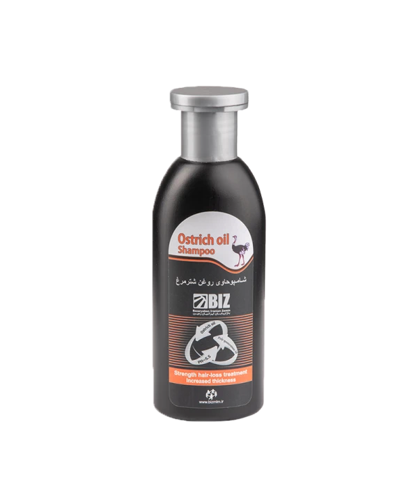 شامپو حاوی روغن شترمرغ بیز با بهره گیری از ترکیبات طبیعی به موها استحکام می بخشد، موی سر را از ریشه تا انتها قوی کرده، پوست سر را مرطوب نگه داشته و از پوسته شدن آن جلوگیری می نماید. این شامپو همچنین به افزایش سرعت رشد مو کمک بسیاری می کند. روغن شترمرغ موجود در این محصول بافت های سست شده مو را ترمیم کرده و موجب تحریک و رشد مو در همه ناحیه های سر می شود.