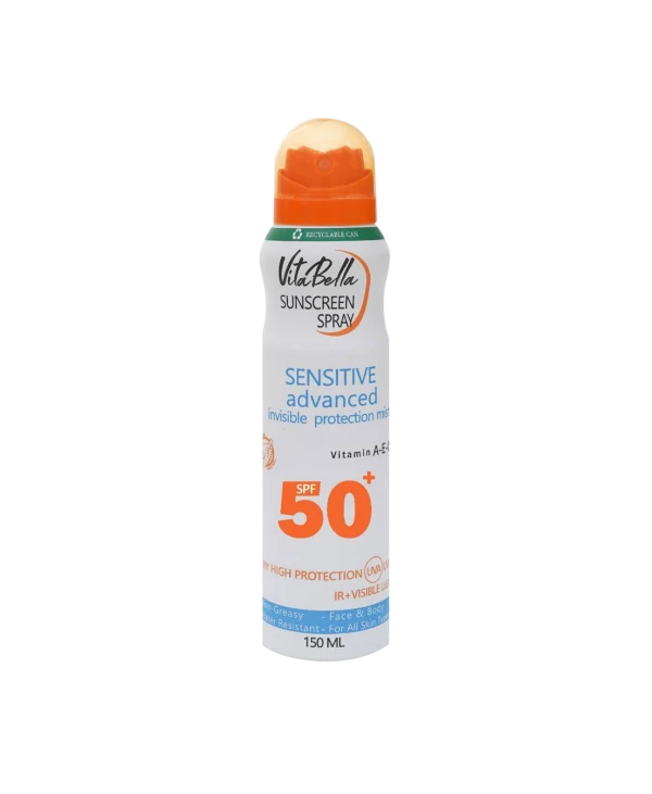 اسپری ضد آفتاب آئروسل ، محصولی با عملکرد مشابه کرم ضد آفتاب است ولی استفاده از آن خیلی راحت تر و سریع تر است و احساس چربی پوست در آن کمتر از کرم ضد آفتاب می باشد و می توانید آن را برای تمام نقاط بدن استفاده کنید. این محصول به صورت قطرات ریز روی پوست برای محافظت در برابر آفتاب استفاده می شود.اسپری ضد آفتاب ویتابلا با ترکیبات ثابت محافظت کننده در برابر اشعه ماوراء بنفش در کنار مواد طبیعی که پوست را بازسازی می کنند، فرموله شده است. این نوع ضد آفتاب برای نواحی سختتر بدن مانند گوشها، پشت کمر و پاها عالی است. استفاده از آن بسیار راحت است، بخصوص زمان هایی که بیرون هستید، یا به دلیل داشتن میکاپ امکان تجدید کرم ضد آفتاب وجود ندارد.